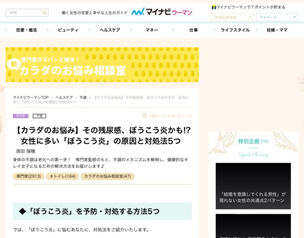 マイナビウーマンは健康や医療に特化したサイトではないようです。初めてこのサイトを訪問したため、使用法がよくわかっていません。